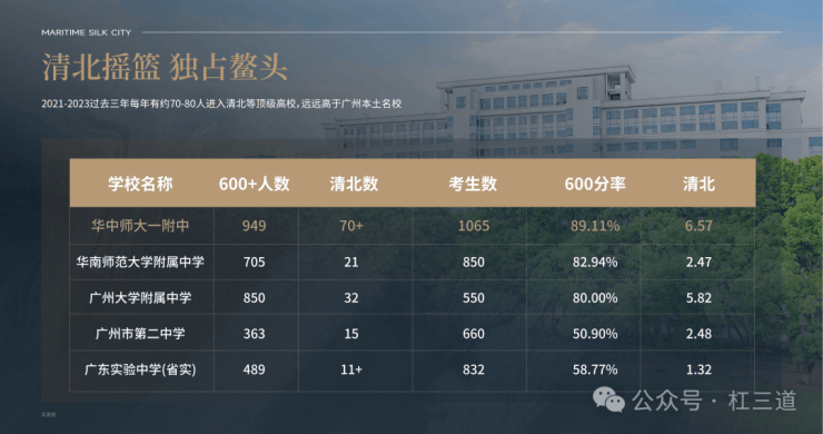 1、引入华中师大教育集团办学,学校连续六年排名全国第一,清北摇篮 (广州第一的华师附仅排名第十五),近100%一本升学率