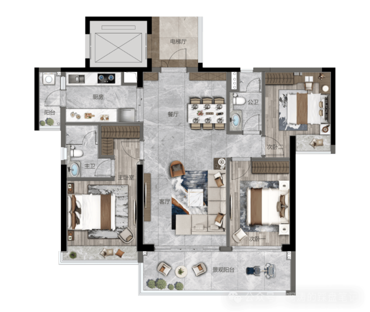 ◇板式建筑,南北对流,开创式大面宽、大开间、双阳台设计、2T3户低密舒适梯户比、私家电梯入户,尽享尊荣。