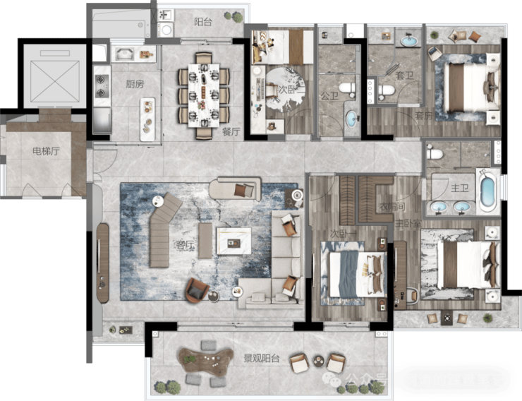 ◇大方厅/中西厨岛台设计/双主套设计奢阔空间尺度,全城罕见约8.3米南向观景阳台,270°一线广角山景大宅,赋予生活无限想象,定义城市进阶圈层。