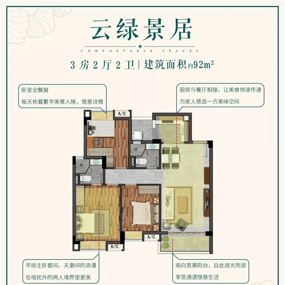 【荣升·珑樾】此次推出建面约60-119㎡的二至四房,一梯4户,包括:建面约 65㎡2房2厅1卫、84㎡3房2厅1卫、92㎡3房2厅2卫、120㎡4房2厅2卫,而且实用率高达85-90%。