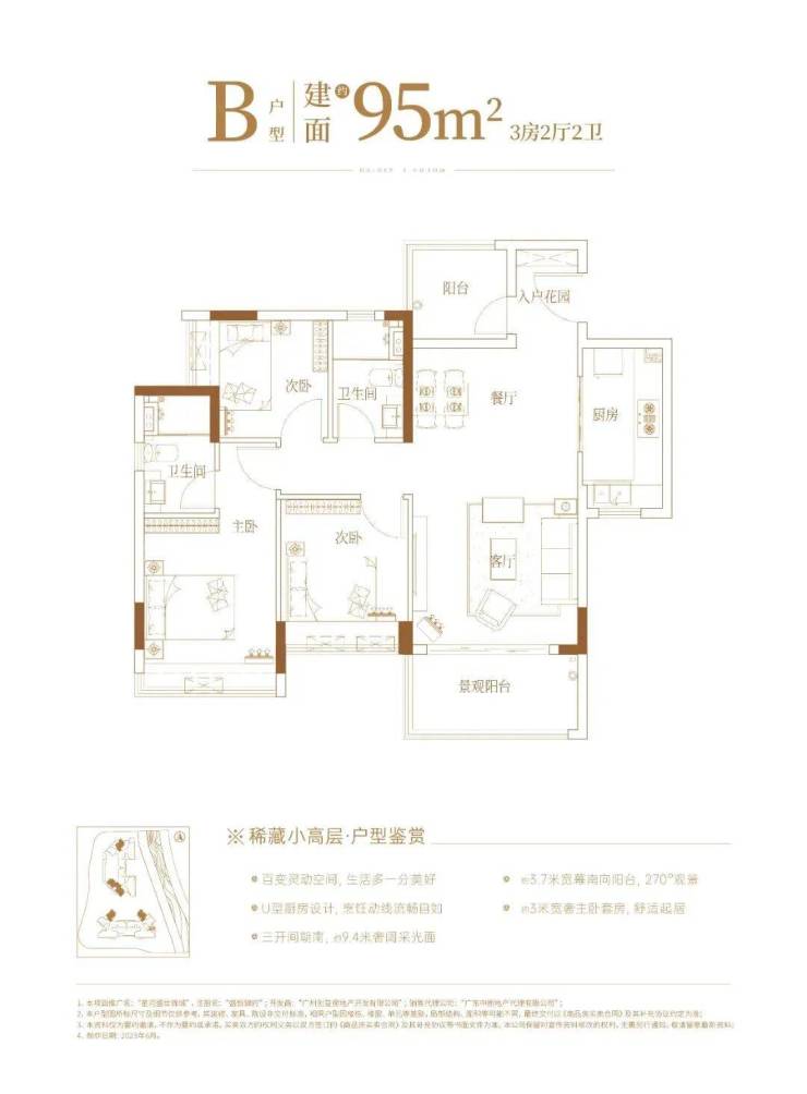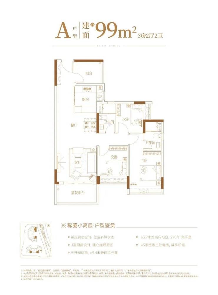 户型方面,选择会比较多,有95㎡三房、98㎡三房(有C、D两个户型)、99㎡三房、128㎡四房,一共五个,均为+1房设计,据说实用率达到约95%。