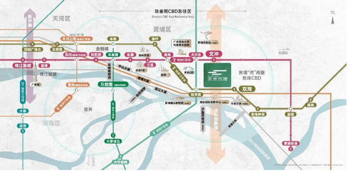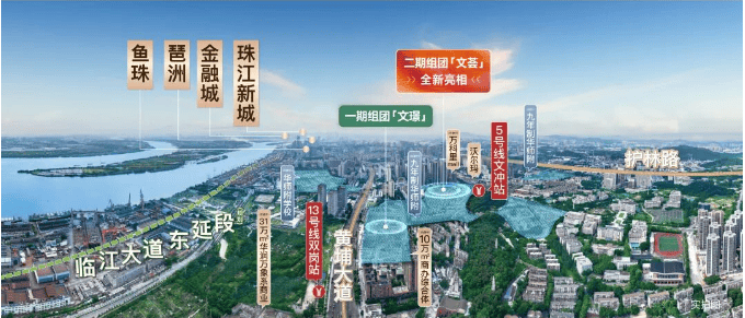 近邻 5 号线文冲站、13 号线双岗站,3 站直达鱼珠、6 站接驳金融城,9 站无需换乘直抵珠江新城,半小时畅达三大 CBD;