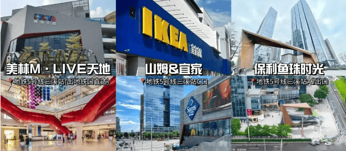 •1公里可达31万㎡华润万象系商业(含12万㎡购物中心,在建中)、沃尔玛、万科里mall;5公里涵盖山姆、宜家、盒马等品质商业;