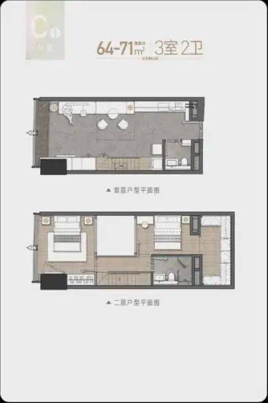 建面约48-52㎡百变Loft,自住、工作、生活三不误