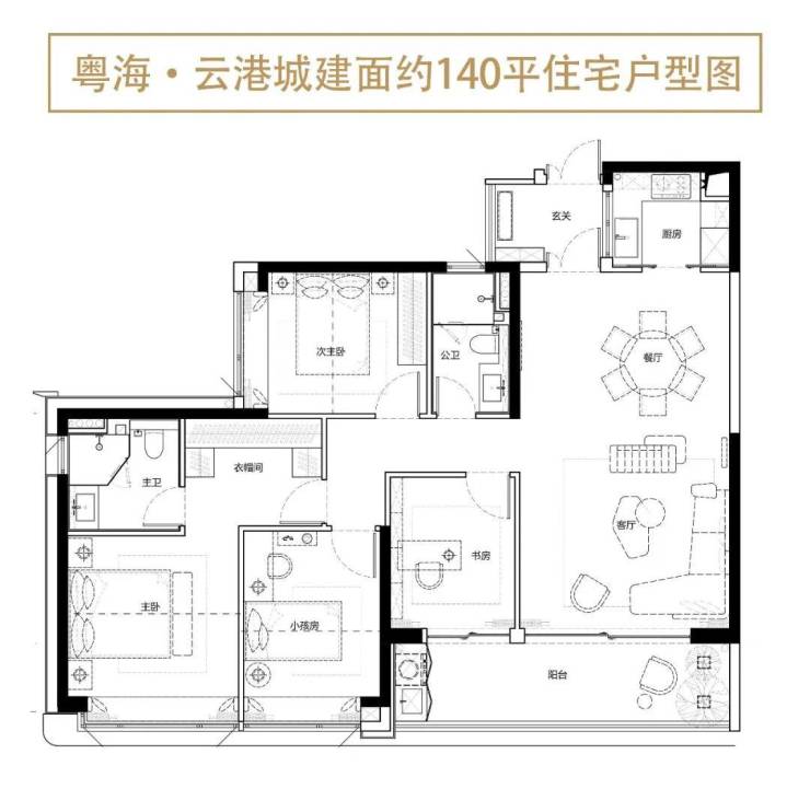 建面约140m²理想奢居,拥有连续13⽶采光⾯,近 13㎡景观阳台,Imax环幕观景,大格局大视野,让城市景观成为生活背景。
