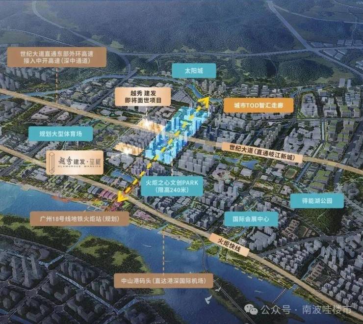 越秀·建发玺樾是由越秀和建发双国企联手打造的高端住宅,是公认火炬区的尖货红盘。越秀建发玺樾最大亮点绝对是区域优势。项目是距离南中城际火炬站最近的项目,直接线距离仅约500米,而且与火炬中心地标群仅一墙之隔。