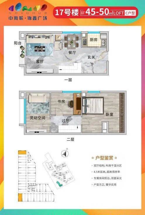 产品面积:平层33-46㎡,复式35-50㎡,商墅109-133㎡