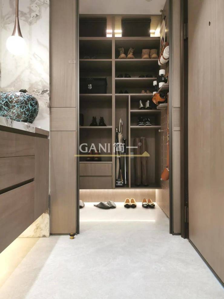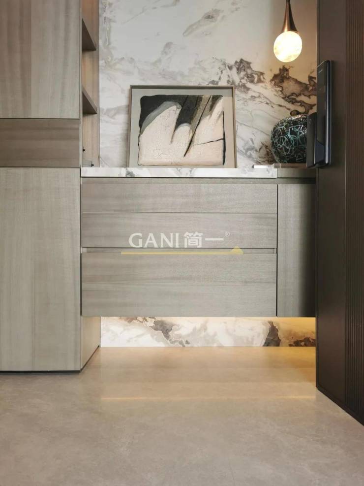 步入玄关,整洁有序的环境让人心情愉悦,归家的疲惫也随之消散。每一寸空间都被巧妙利用,打造出一个既美观又实用的收纳天地。从鞋柜到储物架、艺术感置物台,每一处设计都充满了生活巧思。
