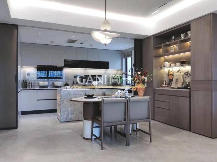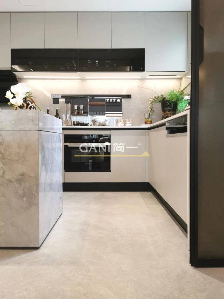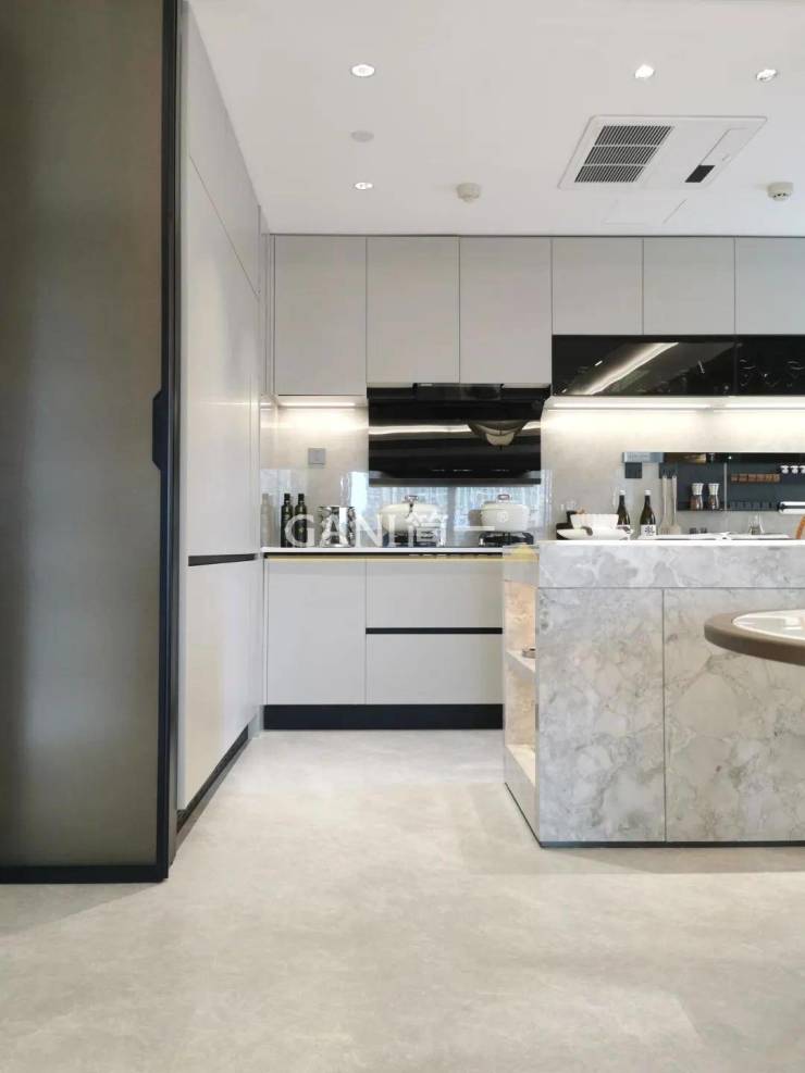 让日常不寻常,厨房延续极简风格,西厨岛台设计,既可以作为厨房的操作台补充,又可以作为吧台、用餐区、西点区,大幅提升厨房的灵活实用度。