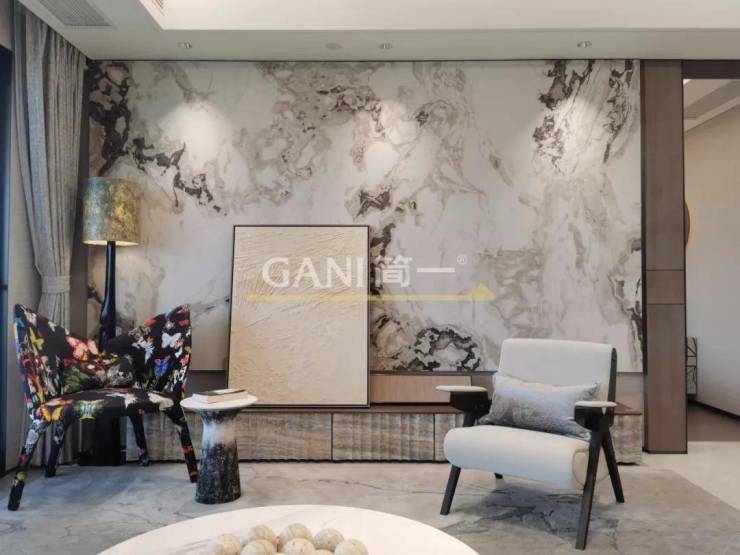创新平层墅化生活方式,细节的雕琢为整体空间叙写更多想象,绿植点缀、墙壁装饰,艺术画作…..客厅背景墙定制芬迪白大理石瓷砖,水墨状自然纹路复刻原始石材质感。每一处都透露出设计师的匠心独运,为居者带来视觉上的享受与心灵上的触动。