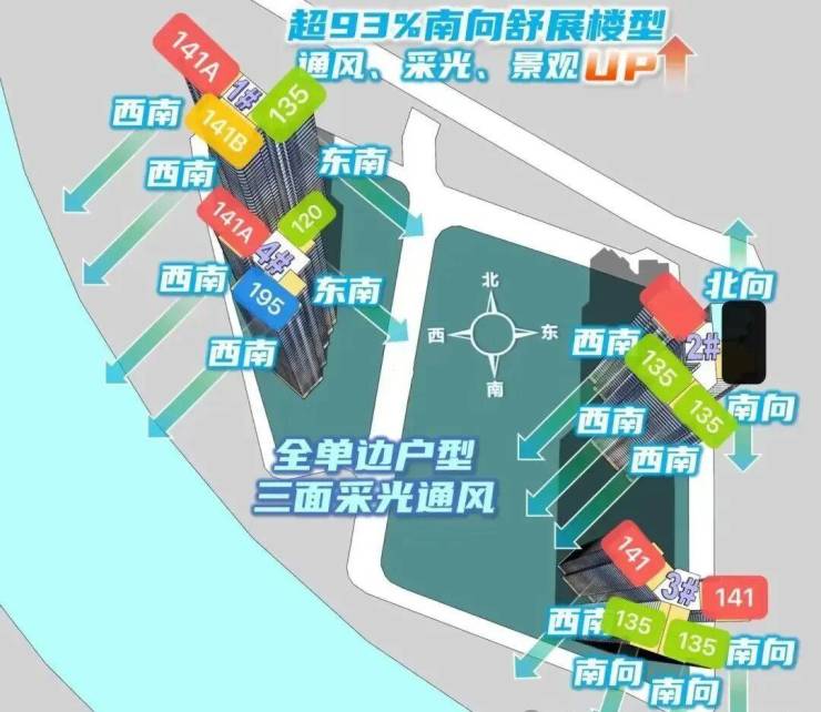 1-4座房源均在售,其中最新加推的是2座,所有户型均有选择, 其中195平的楼王单位选择性最多。