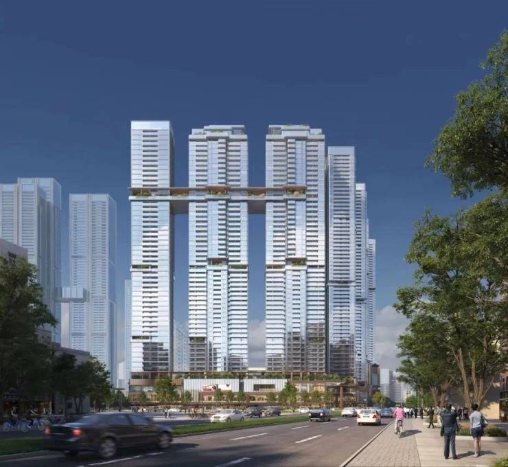 在建筑设计上,项目创新打造了垂直花园城市,实现高密度城市与自然生态的完美衔接。建筑外立面大面积使用玻璃,通过材料以黄金比例划分,形成“横看成岭侧成峰”的景观线。