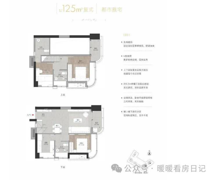 约125㎡3房2厅3卫(标准层高复式户型)分布在二单元03户型30-60楼