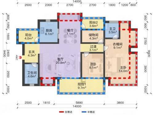 115-138㎡ 四房两厅两卫:南北对流,宽景阳台,改善家庭一步到位;