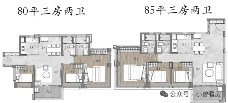 85㎡户型是西部少有的,非超高层+南向三房两卫。
