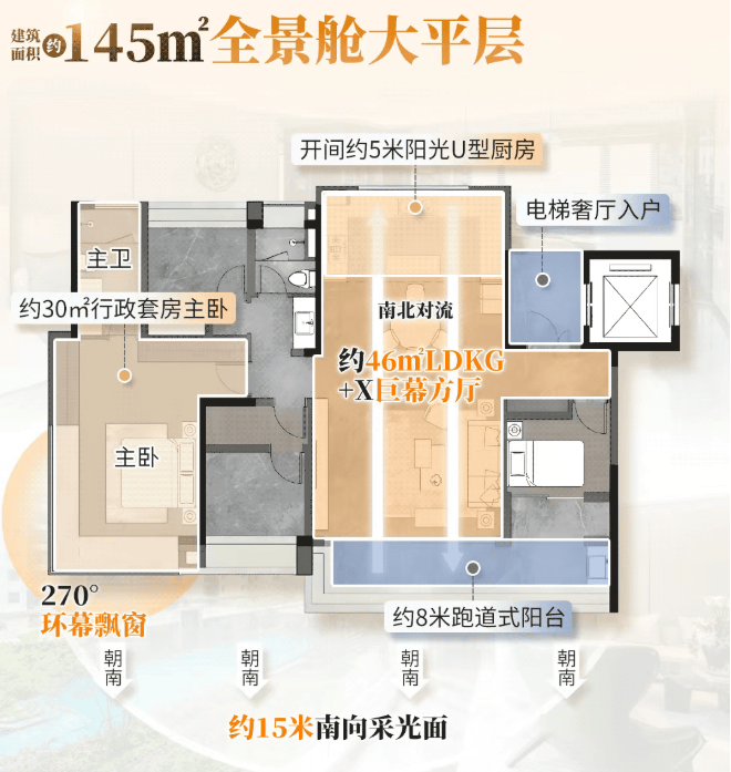 「南向瞰景台」约7米南向瞰景阳台,极目一城璀璨,更懂豪门的眼界;