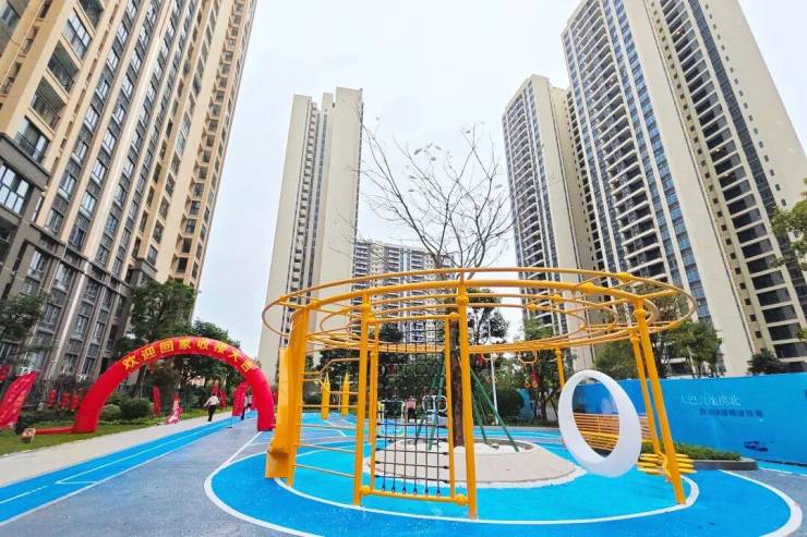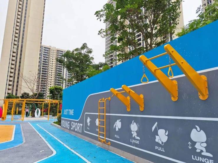 社区园林景观以层次分明的设计与四季常青的生态画卷,营造出自然舒展的生活场景。开阔的阳光大草坪为业主提供休闲放松的绝佳去处,充满童趣的主题滑梯场为孩子们构筑了一个充满欢乐的专属天地,让清脆的欢笑声在园区回荡。此外,活力四射的篮球场、整齐排列的康体运动器材、绵延的健康跑道巧妙融于绿意之间,晨起跑步、傍晚散步,让健康成为日常。