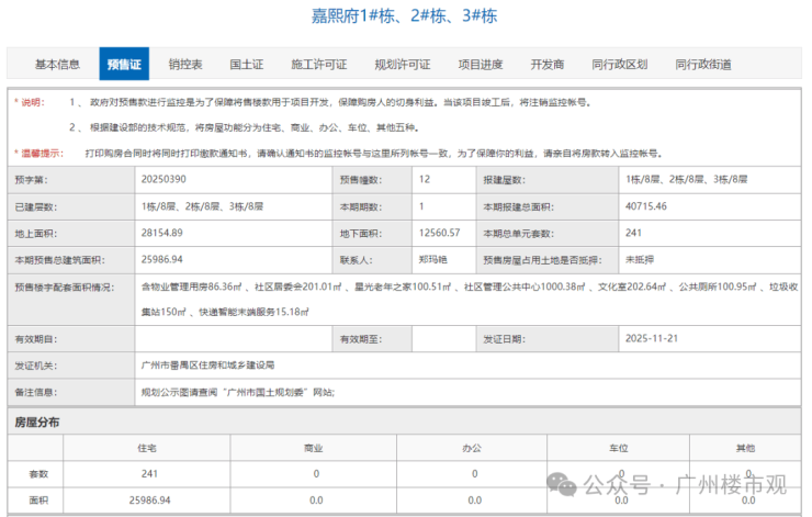这两天,项目刚拿了预售证,一口气推出全盘241套房源,预售总建筑面积25986.94㎡。