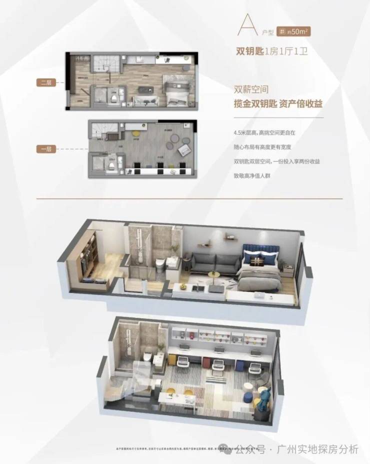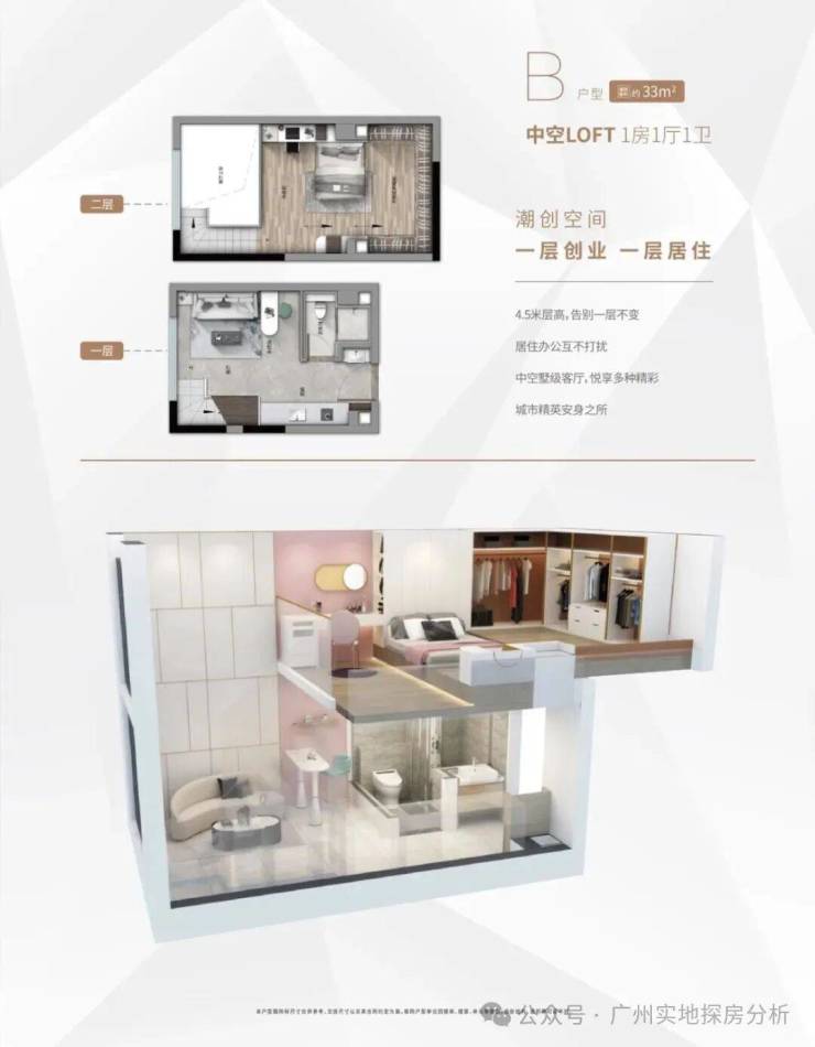 投资:33㎡小户型(总价100万起),优先双钥匙设计(可分租两户)。