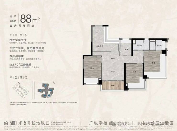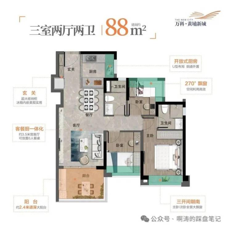 2⃣️建面约88㎡三房两卫(珍稀31套!)