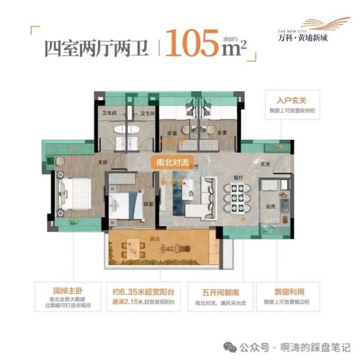 能做4房你敢信吗!经典南北通王者,还可以干多一个空间!! 主卧独立衣帽间,望公园景的稳赚之选!