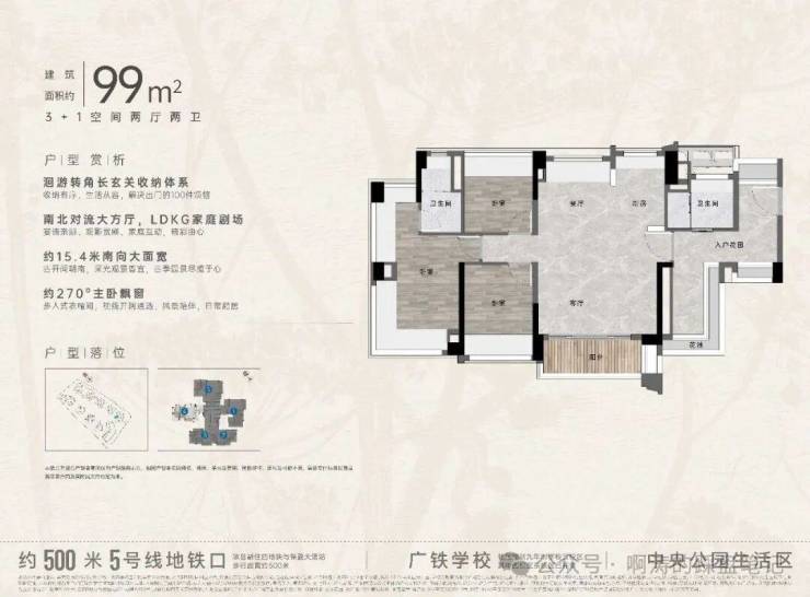 3⃣️建面约99㎡ 3+1空间(高层升级建面约108㎡)