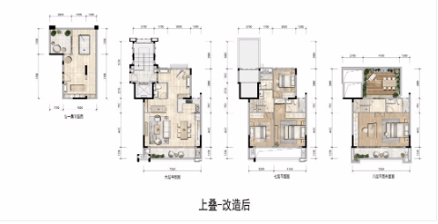 上叠同样呈现精巧的设计理念,建面131平方米、实际可用约300平方米,实用率也高达200%。这栋4层叠墅位于地上六、七、八层和地下一层,注重空间的高效利用。六层包含餐厅和厨房,七层设计了休息区,拥有3间卧室,而八层则打造了南北通透的豪华主卧,设有露台和阳台。两个归家路线从入户大厅或私家电梯开始,为居民提供出色的生活体验。