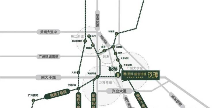 直线距离仅约500米可达板桥地铁站,实现2站万博,1站大学城,5站到琶洲,6站珠江新城;出门即上南大干线,便利车行通达万博、琶洲、珠江新城。