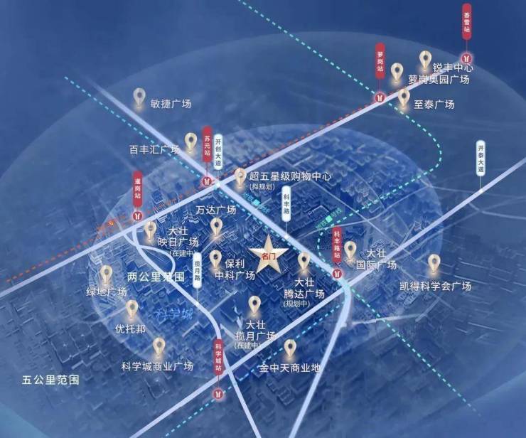 整个项目一共400万方,其中商业配套就占了200万方,周边已有的萝岗万达广场、科学城商业广场、至泰广场等