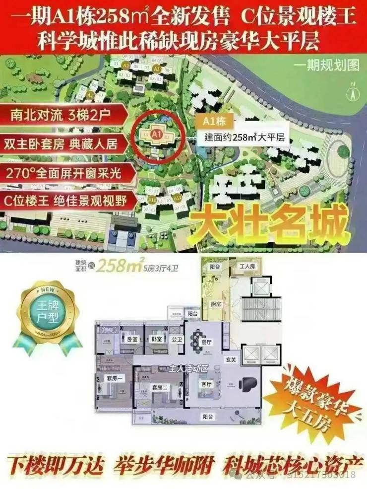 还有~大壮名城一期,终以A1栋楼尊现房之姿,压轴登场。全席仅设四十有余,建面约258㎡纯粹平层大宅,以三梯两户的纯粹格局,为懂得生活真谛的城市家族,开启一扇通往理想生活的大门。