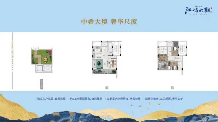 项目叠院产品面积段为160-190㎡,分上中下叠三种。