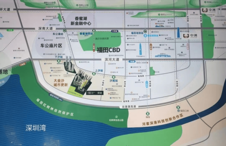 距离地铁7号线上沙站约400-600米,9号线下沙站约900米,未来规划中的22号线将进一步提升通达性。自驾可通过滨河大道、京港澳高速快速连接南山、罗湖等区域,通勤效率较高。