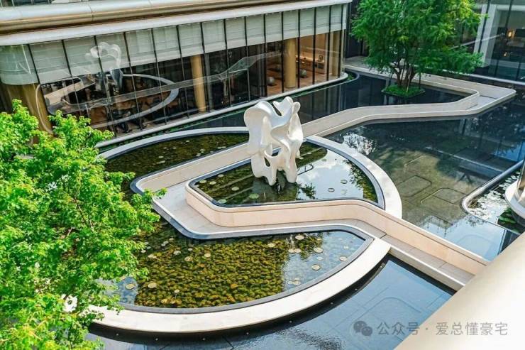 项目创新打造的约2500㎡立体下沉式会所已实景呈现,半开敞式空间将自然光引入私宴厅、健身房等功能空间,悬浮结构设计使其与周边景观浑然一体。