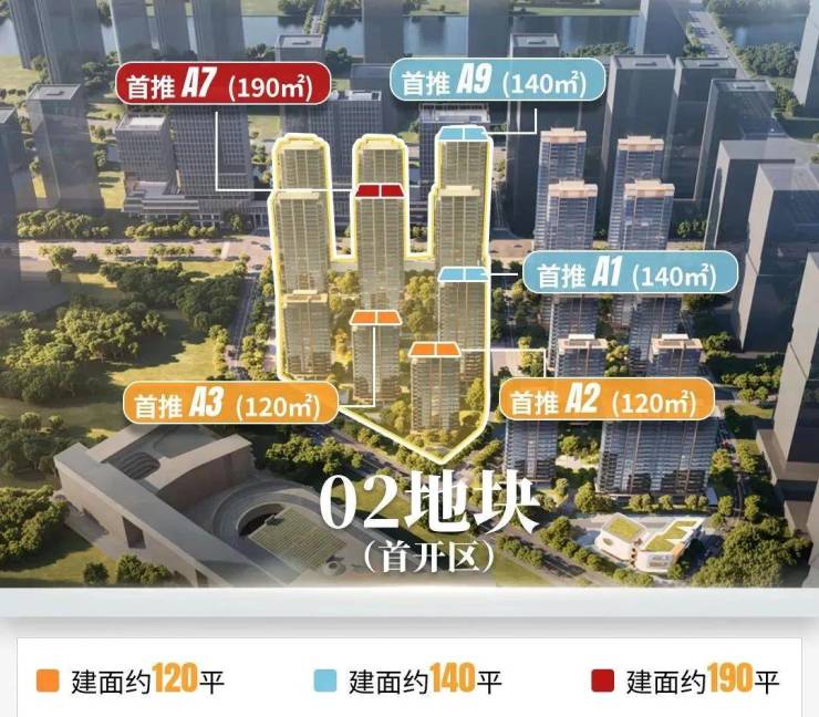 【项目首开】项目首开02地块,面积段涵盖约120、140、190㎡,都是新规户型,均为南北对流双阳台四房,专梯入户,低密纯粹