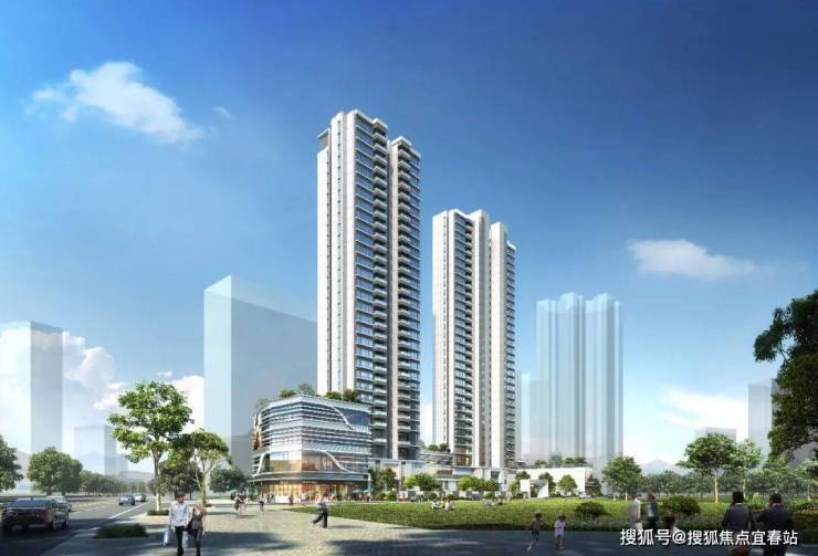 整体以动感横向线条勾勒城市年轻活力轮廓,调整住宅塔楼高度,两栋塔楼主体高差1.55 米,并通过屋顶构架进一步丰富城市天际线;