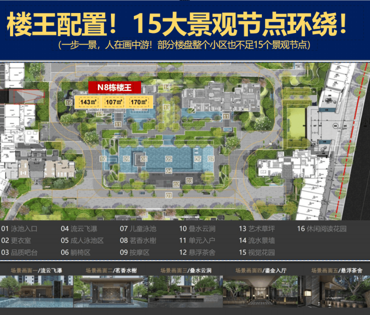 是对标全球知名的安缦系酒店,设置一轴双芯(泳池、会客厅)八境,营造酒店式精致人居环境,定制情景化度假体验,静享自然品质生活。