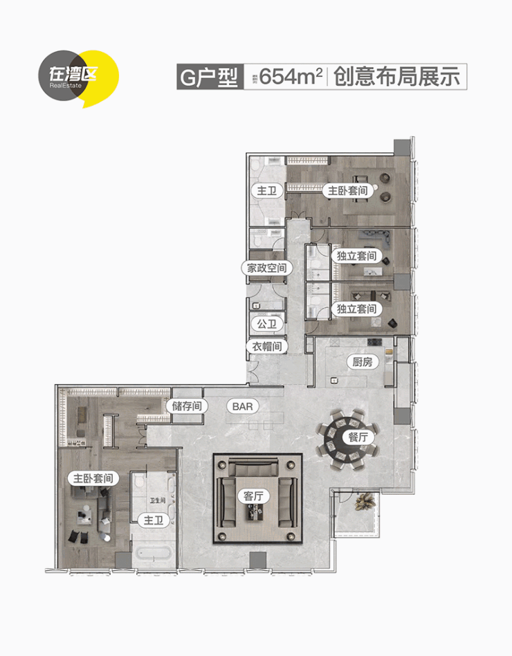 建面约654㎡户型,约150㎡L型LDK超大公区,链接餐厅、露台,展现世家尊荣的气度,全南向IMAX环幕视野,无遮挡直面珠水,把江岸纳为私藏。