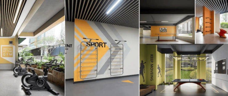 十、全龄段、多主题架空层功能空间架空层配置多元化的主体功能,按照全龄段人群的居住体验,分别规划“儿童成长、长者幸福、健身运动、邻里中心”四大功能主题空间。以每方圆100米服务半径划分三个服务组团,保证每个核心组团拥有一个全年龄段活动功能。