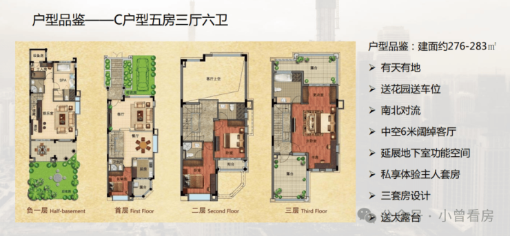 268-283㎡宜居别墅设计,全现楼交付,即买即享有。自有花园,给自己一方栽花品茗的天地院落。