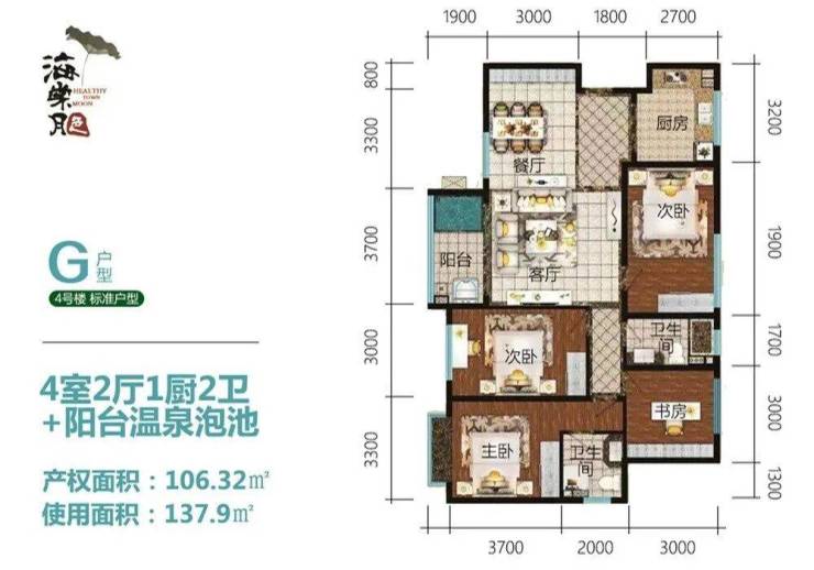 G户型建面约106㎡,四房两厅两卫