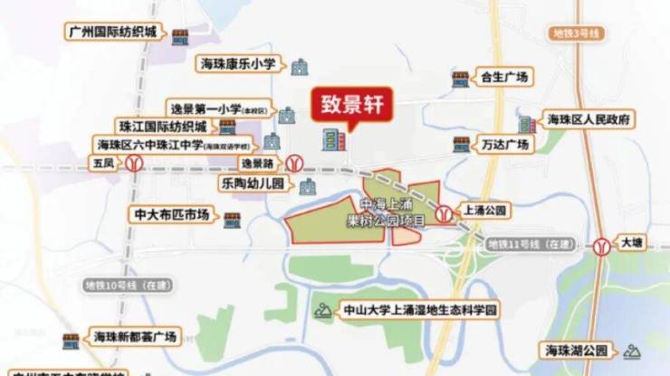 致景轩的业主按地段划分是逸景小学,有机会摇到附近的广州六中,或者97中、景中、琶洲执信、绿翠和聚德中学。另外,项目南面约100多米有华南师范大学附属中学海珠双语学校,是一所民办的九年一贯制国际双语学校。
