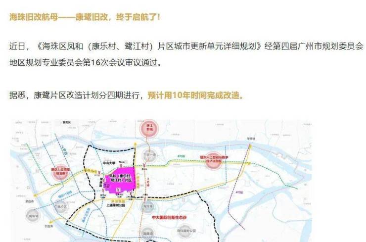 海珠康鹭片区的旧改,目前已经是提上进程,都是超级大旧改的项目,但进度会比较缓慢,因为整个片区内都是产业。