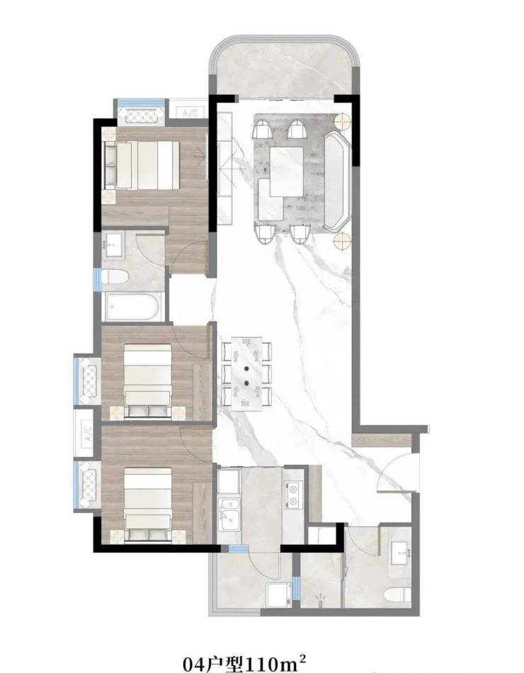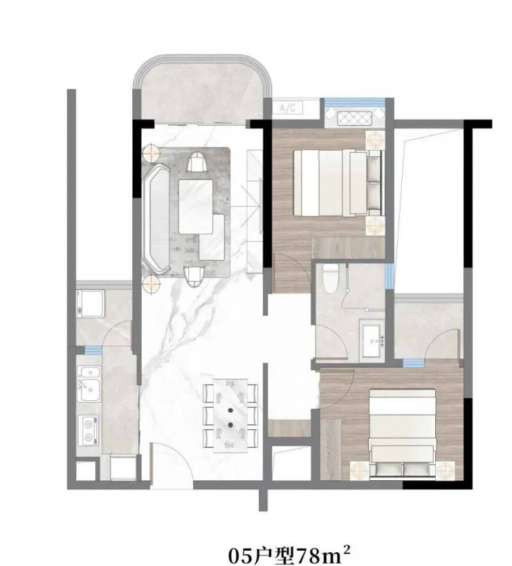 主推户型:78㎡、86㎡、91㎡、101㎡、110㎡两房~三房