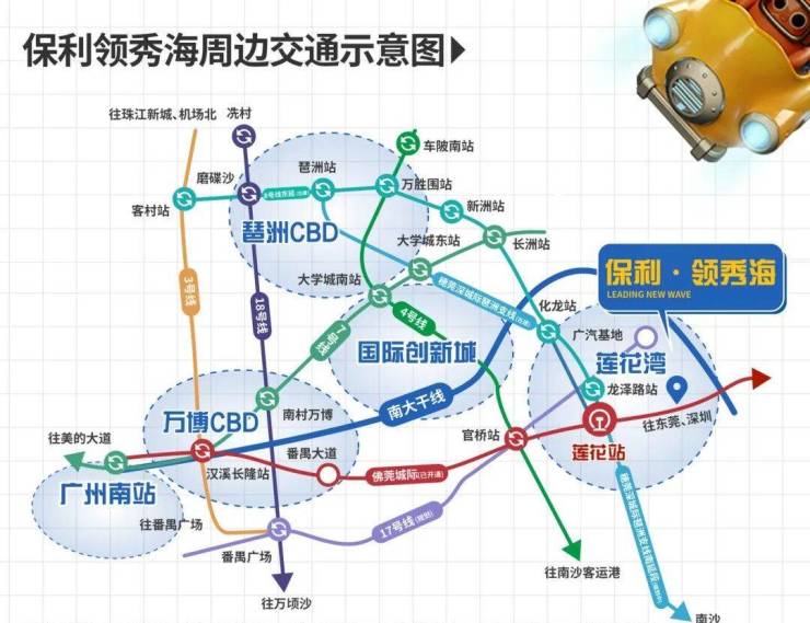 莲花山枢纽站,3站可以直达琶洲,出行成本多少先不说,靠城轨通勤其实也是不现实的,因为城轨不像地铁那样班次频密,这一点可以参考一下新塘的穗莞深。
