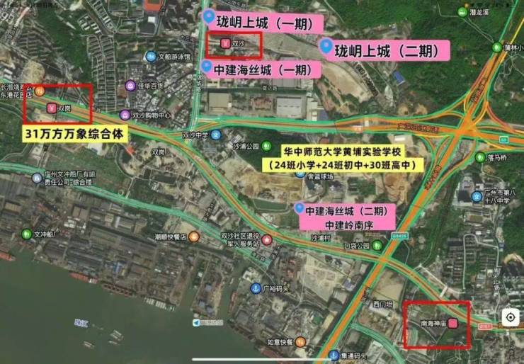 目前首开组团中建海丝城一期靠近5号线双沙b出口50米,乘坐5号线无需换乘直达金融城、珠江新城,更有4、7、13号线连接琶洲、科学城、万博等区域。