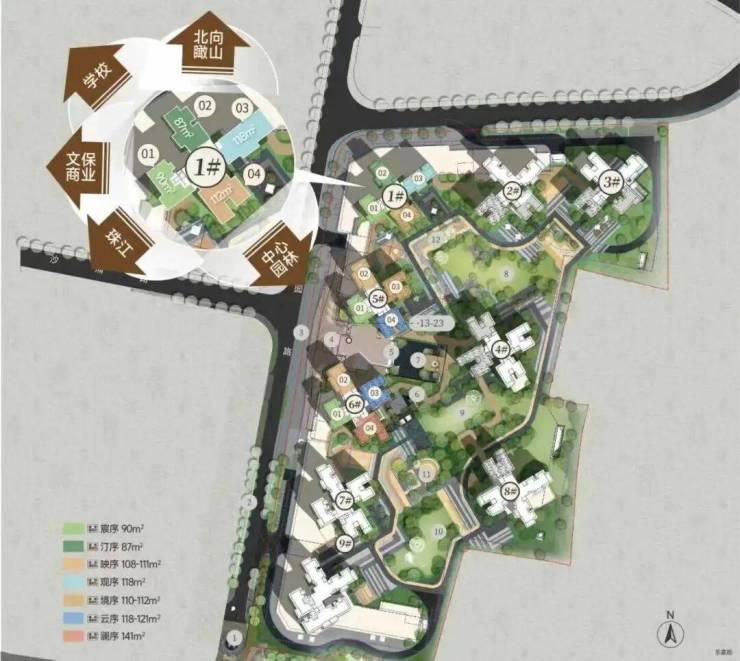 拥揽珠江一线景观、关键还是南向望江,这是连琶洲都做不到,还背靠5000亩龙头山森林公园,南望珠江水,山水相依,所开发地块约90%界面朝向公园,打造 300 米见绿,500 米见园;加上片区规划“5+9”的“公园城市”,一流生态环境实现出门即入园。