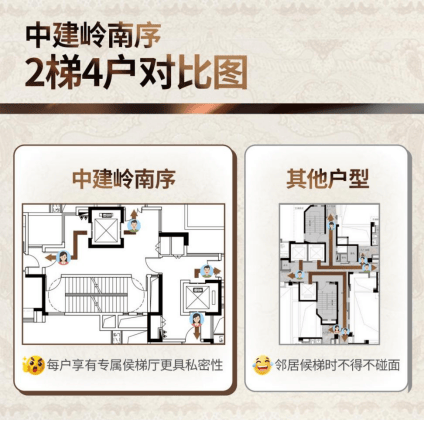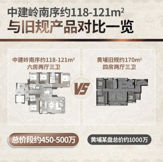 阔绰的空间体验外,中建岭南序还做到六空间双主套,而后者却只有四房。