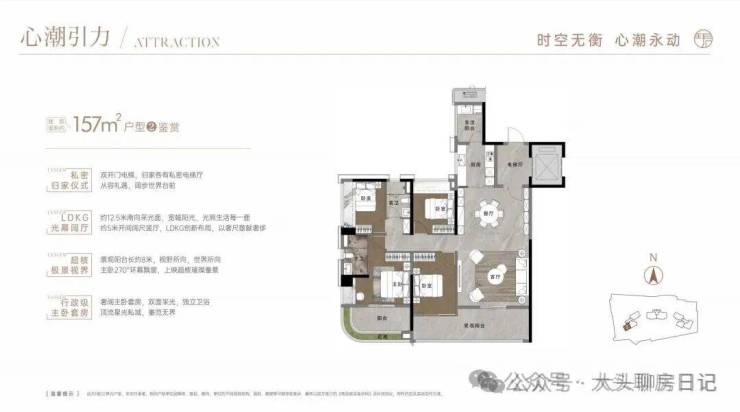 项目一共有3栋楼,层高20-26,总户数仅166户,产品为157-196-203-253-257平大平层,主打豪宅,面向的客群非常纯粹。