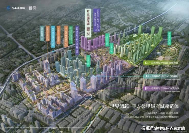 项目总占地规模超500万平方米,分为A/B/C三个大区进行整体开发,是集产业写字楼、精品住宅、教育文化、购物中心和交通枢纽于一体的超大型城市综合体项目。