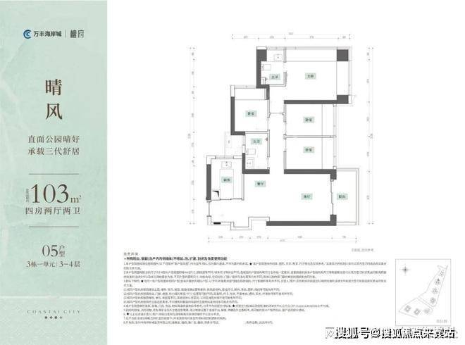 103㎡竖厅四房:传统布局北向次卧可改书房,适合三代同堂家庭,东南或西南朝向,约10米采光面。